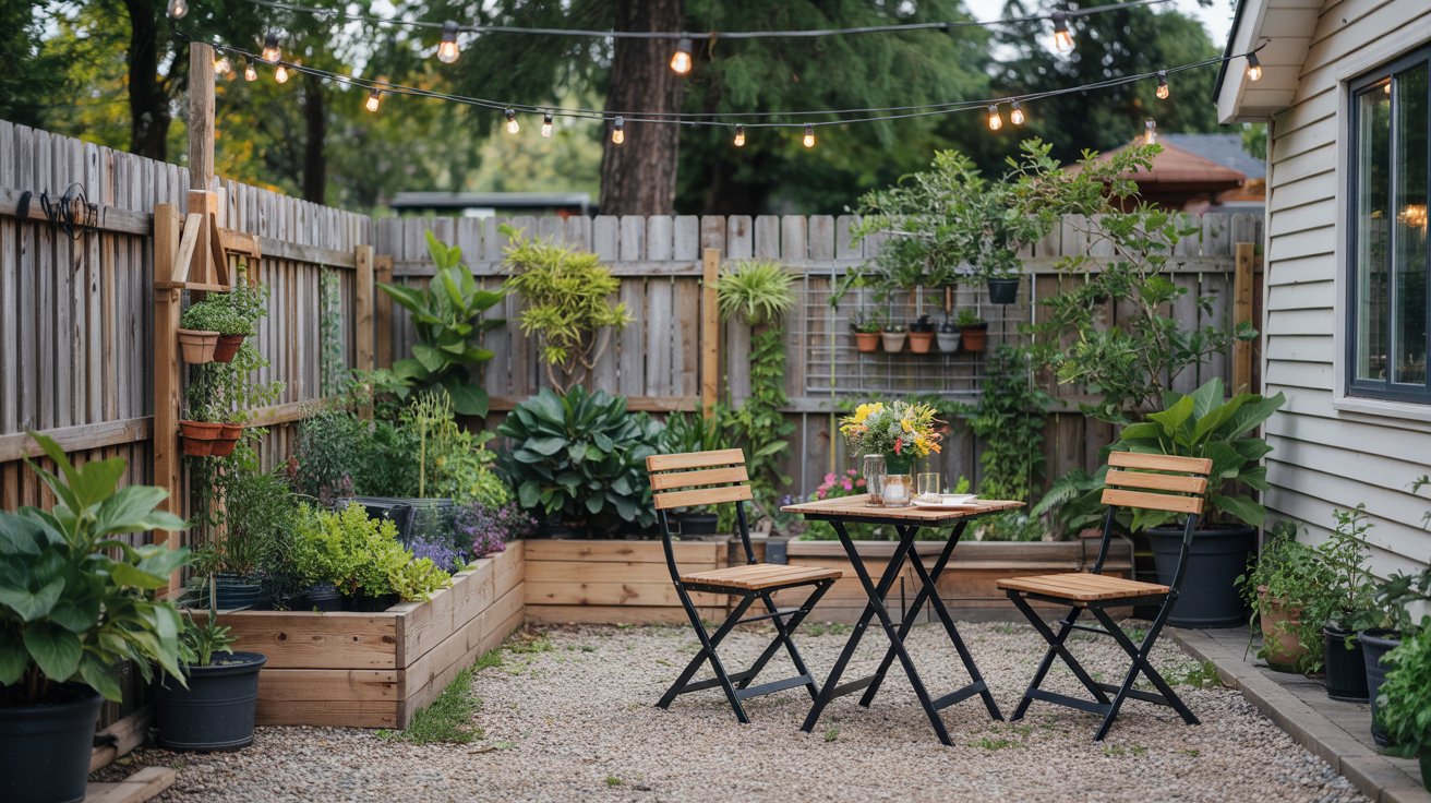 Before buying anything, walk your yard with a tape measure and note sun direction and wet spots. Placing seating in a shady corner or a container garden over a drainage low point wastes money no matter your budget.