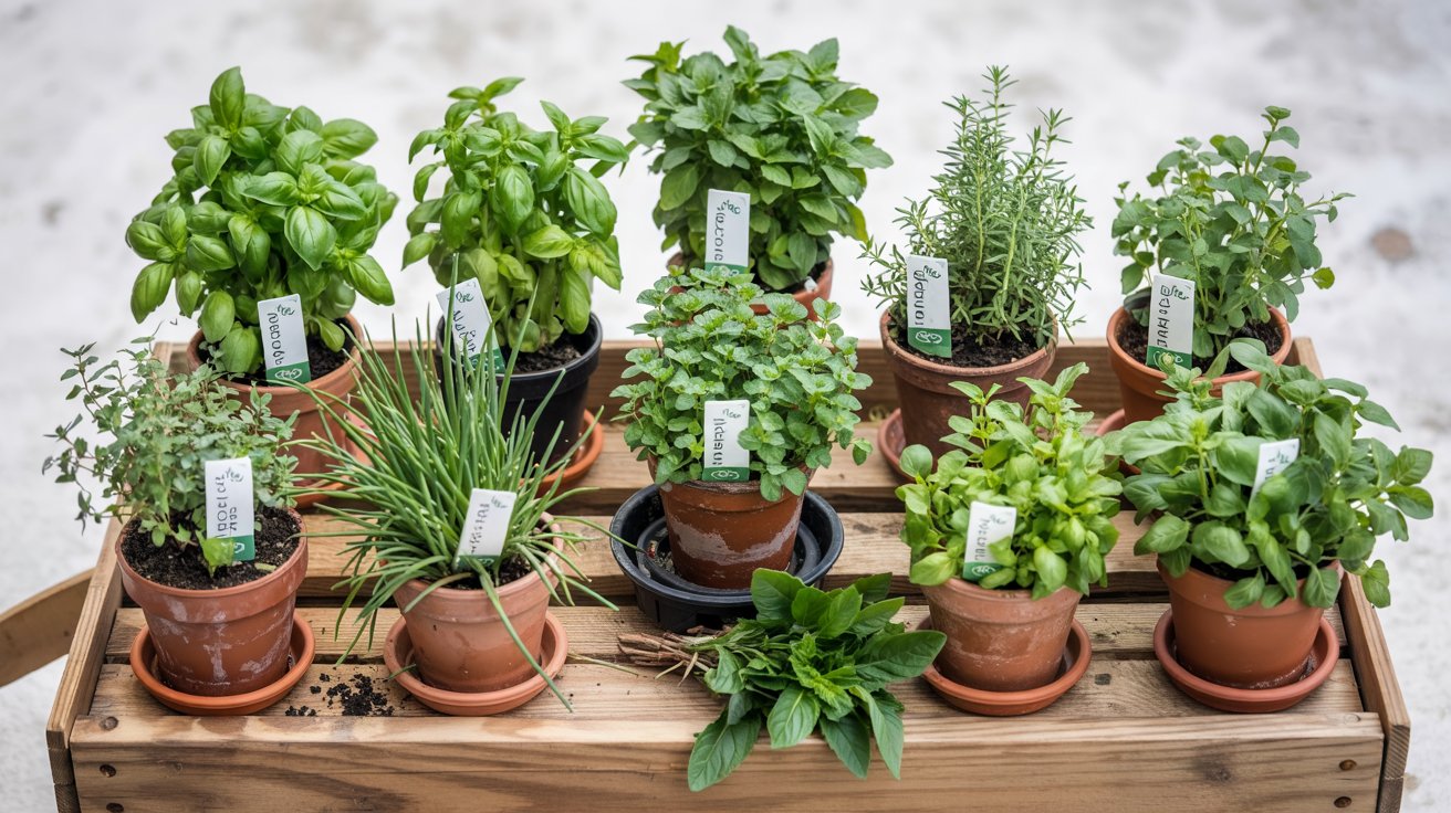 A practical starter set is basil, parsley, thyme, and mint — four herbs that cover everyday cooking, tolerate container growing, and are available as transplants at most garden centers.