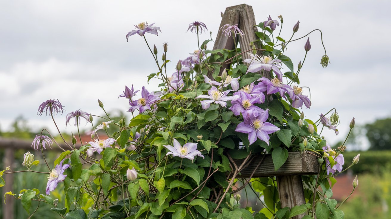 - Containers: Use a minimum 15-gallon pot with a 4-foot obelisk insert; non-climbing Group 3 types like 'Arabella' or 'Alionushka' suit containers better than vigorous species.