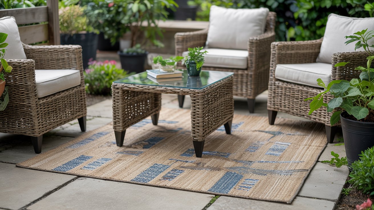 Only for covered, dry-climate patios. Jute, sisal, and seagrass absorb moisture and degrade quickly when wet. In humid or rainy regions, they typically fail within a single season, per rug lifecycle data.