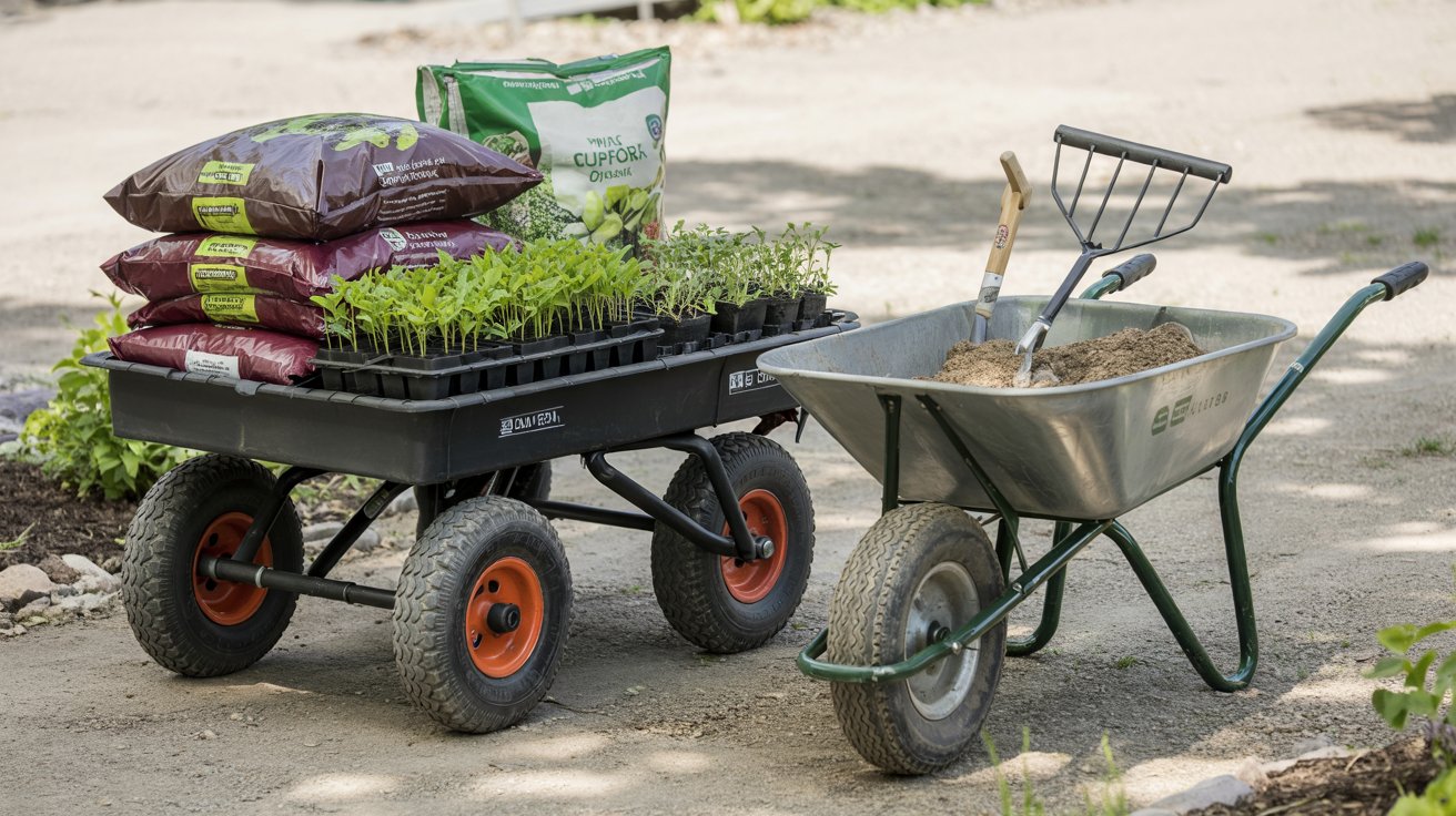 Choosing between a garden cart and a wheelbarrow comes down to terrain, load type, and gate width. Four-wheel carts handle heavy, stable loads on flat ground; wheelbarrows offer better maneuverability on slopes and tight paths.
